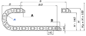 K = Zugschlag für Biegeradius bei der e-ketten Längenberechnung in mm