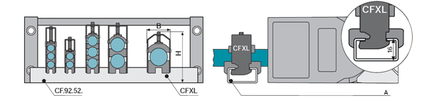 Das Maß H in den Tabellen geht vom Einsatz der jeweils max. Nennleitungsdurchmesser aus. Bei dünneren Leitungen können sich abweichende Maße ergeben. Anzugsdrehmoment für CFX Bügelschellen 1,5 Nm Bei elektrischen chainflex® Rundleitungen Maß B = +2