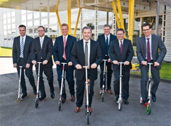 v.l.n.r.: Tobias Vogel, Leiter Vertrieb & Marketing Lagertechnik; Michael Blaß, Prokurist, Leiter Vertrieb & Marketing e-kettensysteme®; Frank Blase, Geschäftsführer; Gerhard Baus, Prokurist, Leiter Geschäftsbereich Kunststoff-Gleitlager; Artur Peplinski, Prokurist, Leiter International Group Development & Marketing; Harald Nehring, Prokurist, Leiter Geschäftsbereich e-kettensysteme®; Christoph Müller, Prokurist, Leiter Finanzen und Controlling