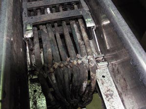 Da dem Biomüll auch gröberes Material wie Strauch- und Baumschnitt beigemischt wird, kommt es zusätzlich zu einem sehr hohen abrasiven Eintrag, der vor allem auf die E- Ketten® einwirkt. "Die Anlage läuft Tag und Nacht, so dass die Anforderungen an die Haltbarkeit der Komponenten extrem hoch sind", macht Werner Kretzinger klar.