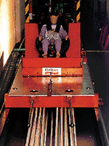 e-kettensystem® E4 an einem Crash-Test-Schlitten mit einer Beschleunigung bis zu 784 m/s² und Geschwindigkeit von 22 m/s.