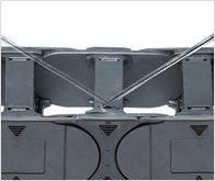 Gerader Lauf und schnelle Montage durch Innen-/Außenlaschenprinzip. Sehr hohe Steifigkeit, hohe Belastbarkeit bei Querkräften durch Hintergriff.