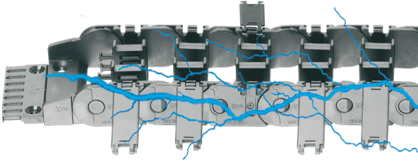 Zu öffnende Energieketten mit Anschlusselementen und Innenaufteilung in ESD-Ausführung ab Lager lieferbar