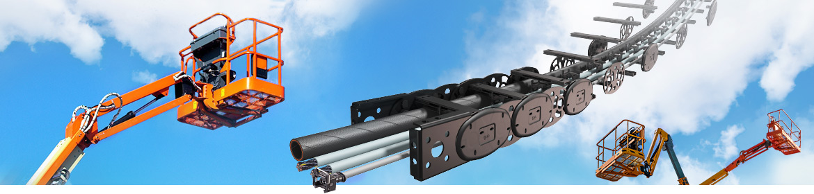 igus Ersatzteile für die Führung, Übertragung und Lagerung an Teleskop-Hubarbeitsbühnen wie Energieketten oder Schleppketten, Kabel und Leitungen sowie Kunststoff-Gleitlager, Linearlager oder Gleitplatten erfüllen die harten Bedingungen der im Außeneinsatz und unter Dauerbelastung befindlichen Geräte.
