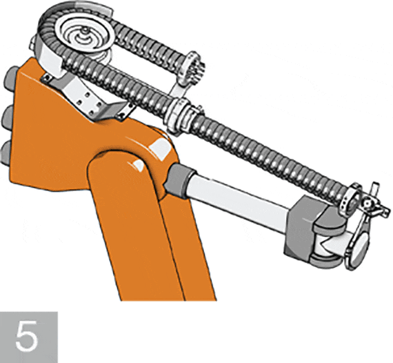 Montieren Sie die "Spannschelle" (2) an Achse 6 des Roboters und anschließend das einstellbare triflex® R-Anschlußelement