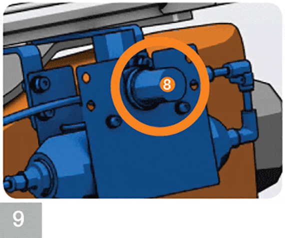 Für eine optimale Einstellung der Rückzugskraft füllen Sie die triflex® R mit Leitungen und Schläuchen und führen Sie den Roboter in einer vertikalen Position der Achse 6 nach unten. Erhöhen Sie den Luftdruck mit dem Druckminderventil so, dass