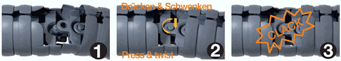 Durch die deutlich höhere Stabilität der B-Version ist ein Demontage Werkzeug erforderlich um die Kettenglieder der e-kette® voneinander zu trennen.