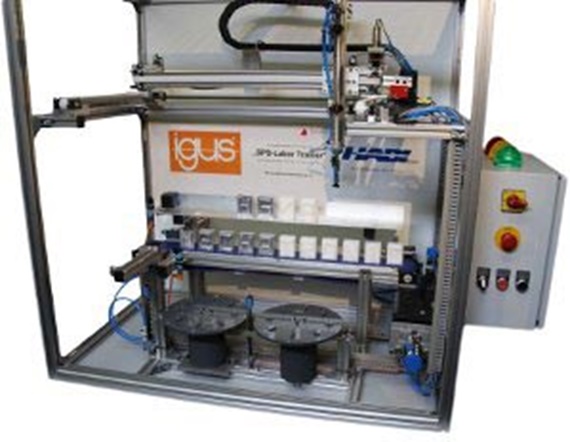 Aufgrund eines sehr begrenzten Budgets wurden nahezu alle Komponenten eigens entwickelt und gefertigt, wie z.B. die Baugruppen Raumportal, Förderband und Drehteller. So kamen diverse Kunststoffgleitlager und zwei Energieführungsketten des Herstellers „igus®“ zum Einsatz. Für die großartige Unterstützung durch „igus®“ möchte wir uns an dieser Stelle nochmals bedanken!