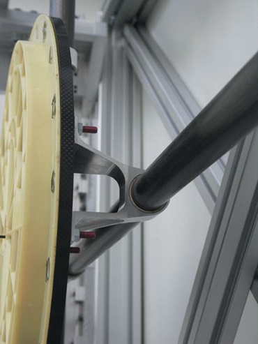 Gleitlagerbuchsen aus dem reib- und verschleißarmen Werkstoff "iglidur® J" und besonders leichte Kohlefaserwellen halten den hohen Belastungen stand. Es sind insgesamt vier Buchsen und zwei Wellen im Einsatz.
