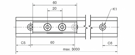 Bestellnr. Max. Schienenlängen a C4 A3 C5=C6 h h1 K1* ly lz Schienengewicht Preis / m