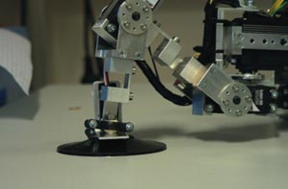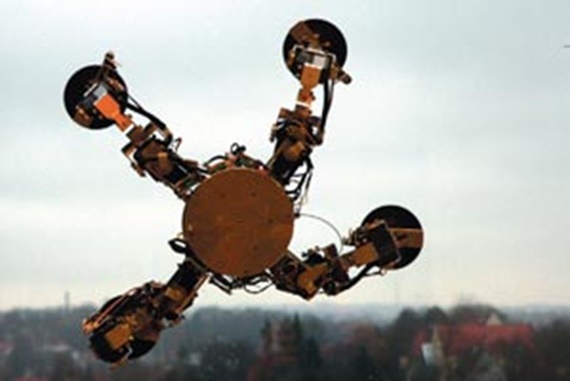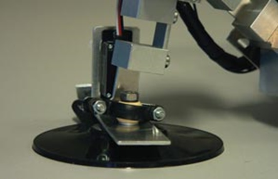 Daher wurde zunächst ein Saugprinzip entwickelt, bei dem der Kletterroboter rein passiv, d.h. ohne Energieeinsatz, an der Scheibe gehalten wird. Dazu werden einfache „passive“ Saugnäpfe mit dem normalen Bewegungsapparat an die Scheibe gedrückt und dabei evakuiert.