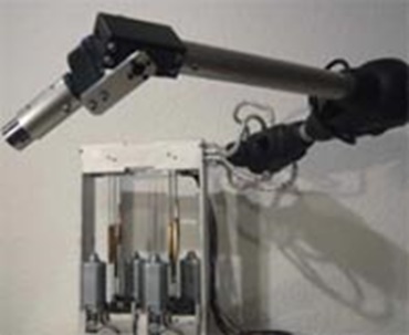 Hier wurde die Konstruktion eines 5-Achs-Gelenkarms zum manus®-Wettbewerb eingereicht. Der Gelenkarm wurde mit zwei robolink®-Gelenken von igus® konstruiert. Bei robolink® sind unterschiedliche Bewegungsmechanismen in einem Bauteil integriert, die Aktuatoren und Steuermodule sind von den Werkzeugen entkoppelt. Der fünfte Freiheitsgrad wird von einem Servomotor zur Verfügung gestellt. Als „Hand“ dient hier ein elektromagnetischer Greifer.