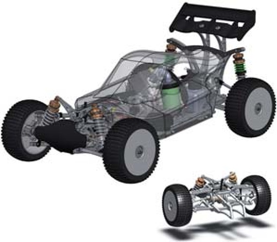 Bei diesem Rennauto wurden die Querlenkerstifte bislang ohne Gleitlager geführt. Dies führte zu erhöhter Reibung und zu viel Spiel im Fahrwerk, was wiederum das Fahrverhalten beeinträchtigte. Mittlerweile wird das komplette Fahrwerk mit Gleitlagern aus iglidur® J gelagert. Sie arbeiten zuverlässig bei allen Umgebungsbedingungen. Da sie kaum Verschleiß aufweisen, sind sie auch eine kostengünstige Lösung für diese Anwendung im Hobbybereich.