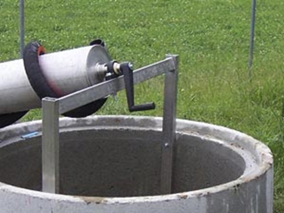 Diese handbetriebene Wasserpumpe funktioniert nach dem archimedischen Prinzip und wurde für einen Abenteuerspielplatz konzipiert. Für die Lagerung der archimedischen Spirale war eine schmutz- und wasserunempfindliche Lagerung gefordert. Zudem ist die Lagerstelle der Witterung ausgesetzt, Die Lagerung besteht aus einem Festlager und einem Loslager. Das Gewicht des kompletten Rotors beträgt rund 100kg. Hier wurden zwei igubal® Stehlager KSTM verwendet.