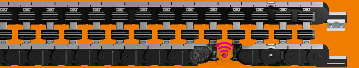 Optional kann die neue P4.1 mit smarten Überwachungssensoren ausgestattet werden. Dadurch wird ab einer definierten Verschleißgrenze ein Signal an das igus® icom Kommunikationsmodul ausgeben, mit dem die Wartung der Rollenkette vorausschauend geplant wird. Je nach Kundenwunsch können die Daten des icom Moduls unterschiedlich genutzt werden – beispielsweise für reine Wartungsmeldung oder mit der Anbindung an das igus® Datacenter für eine intelligente und dynamische Lebensdauervoraussage. In diesem Fall werden die Wartungsempfehlungen via Machine Learning und KI-Algorithmen ständig mit den Erfahrungen aus vielen laufenden Anwendungen abgeglichen und präzisiert. Durch die intelligente Vernetzung der P4.1 Rollenkette kann der Instandhalter jederzeit auf die Lebensdauerdaten der e-kette® zugreifen.