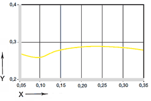 Wie die Verschleißfestigkeit ändert sich mit der Belastung auch der Reibungsbeiwert μ, kurz Reibwert genannt. Anders als bei den anderen iglidur®-Werkstoffen bleibt der Reibwert von iglidur® W300 auch bei höheren Umfangsgeschwindigkeiten konstant niedrig.
