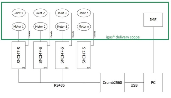 igus® Schrittmotoren, Anzahl entsprechend der Anzahl der Achsen des Arms