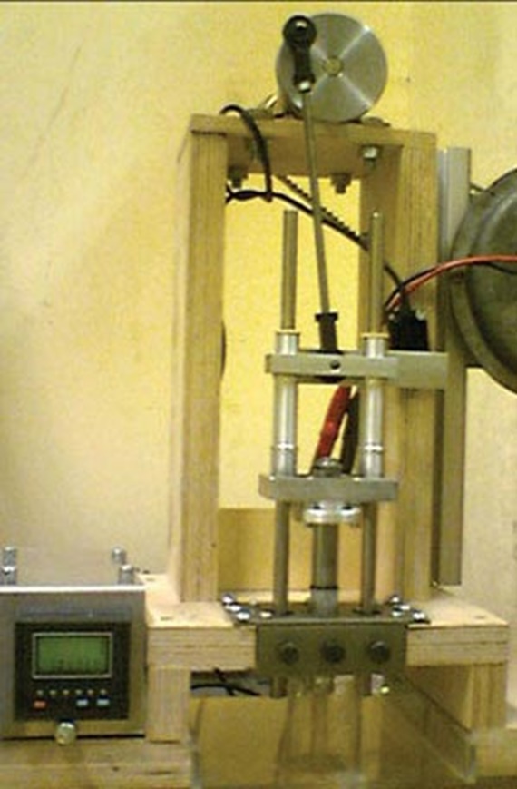 „Pneumatikdichtungen mit geringem Durchmesser sollen auf Verschleiss geprüft werden. Dazu werden sie im Schlitten eines Kurbeltriebes montiert, während die Stange, auf der sie gleiten, fest steht. Der Schlitten ist mit drei igus® -Gleitbuchsen auf zwei Stangen vertikal geführt und wird über einen Kurbeltrieb angetrieben. Das Pleuel ist mit igubal® -Kugelköpfen versehen. Schlitten und Pleuel sollten möglichst leicht sein, um keine unnötigen Massenkräfte zu erzeugen. Für diese Anforderung sind die igubal®-Kugelköpfe besonders gut geeignet. Sie zeigen nach etwa 15 Mio. Arbeitsspielen noch kein merkliches Spiel. Die Lineargleitführungen sollten ungeschmiert arbeiten, damit der Prüfling nicht mit anderen Schmierstoffen als dem vorgesehenen Fett in Berührung kommen kann.”