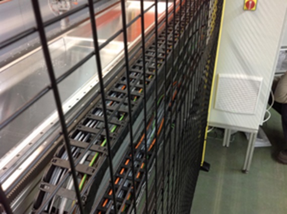 Die Produktionsmaschine sägt, fräst und stanzt Aluminiumbleche. Um die hohen Produktivitätsanforderungen zu erfüllen, müssen die 2 bis 4,5 Meter langen Teile in hoher Geschwindigkeit und Präzision bearbeitet werden. Bei Geschwindigkeiten von bis zu 2 Metern pro Sekunde müssen alle Bauteile robust sein. Für die Führung der Versorgungsleitungen verwendeten die Entwickler eine e-kette® von igus®, die für einen reibungslosen Ablauf ohne Stillstandszeiten sorgt.
