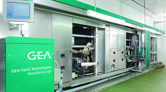 Unter rauen Einsatzbedingungen gewähren Kunststoff-Energieketten hohe Standzeiten bei diesem vollautomatischen Melkroboter.