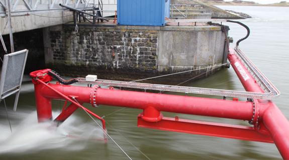 Die Gezeitenturbinen erzeugen aus schnell fließendem Wasser Strom.