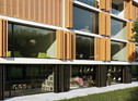 Diese Faltschiebeläden werden von einem Motor bewegt und schützen so komplette Fensterfronten an Gebäuden völlig automatisch vor Sonneneinstrahlung.